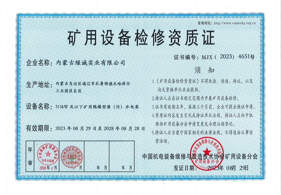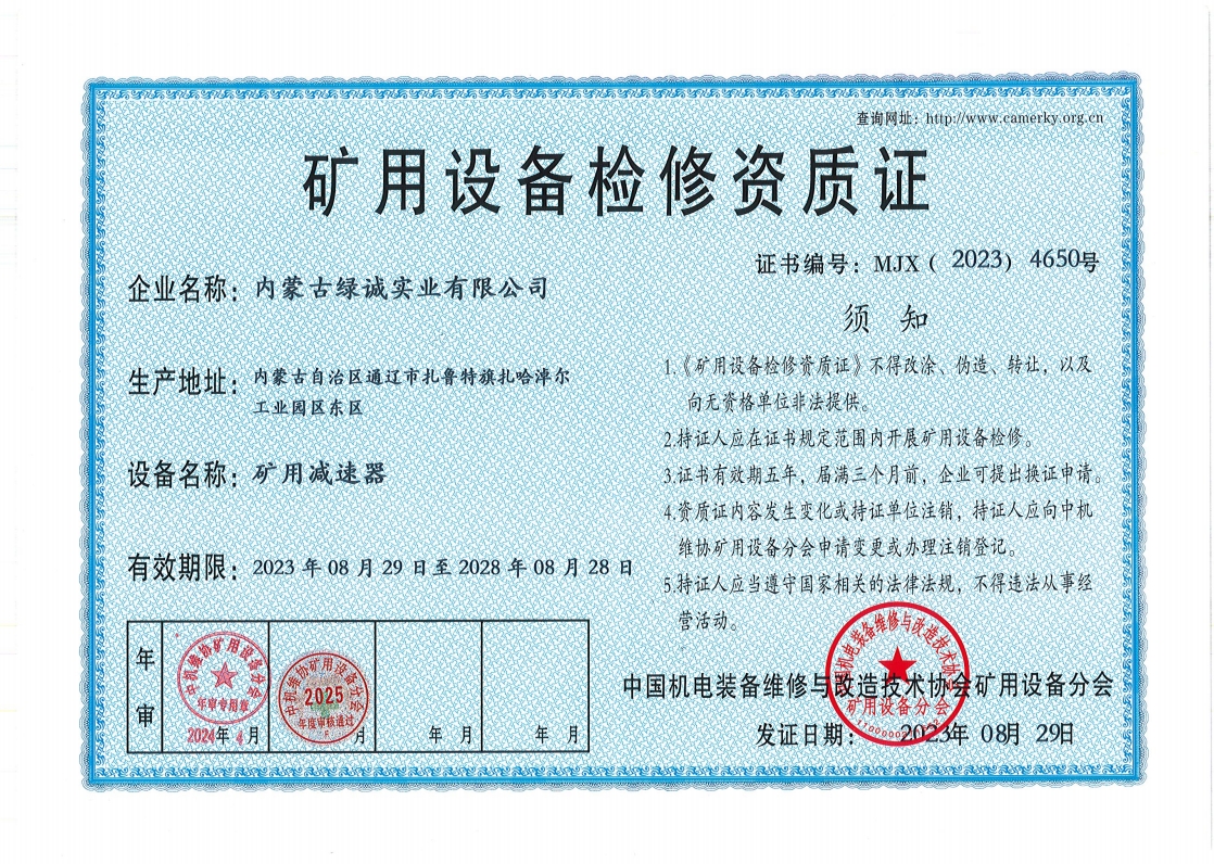 2018年我公司通過中國機電裝備維修與改造技術(shù)協(xié)會礦用設(shè)備分會審核并取得了9項礦用設(shè)備檢修資質(zhì)證書。公司本著“誠信為本 質(zhì)量為先 全心全意為客戶 ”的服務(wù)理念,圓滿完成各個廠礦的機械維修及配套服務(wù),期待與您共同合作。
